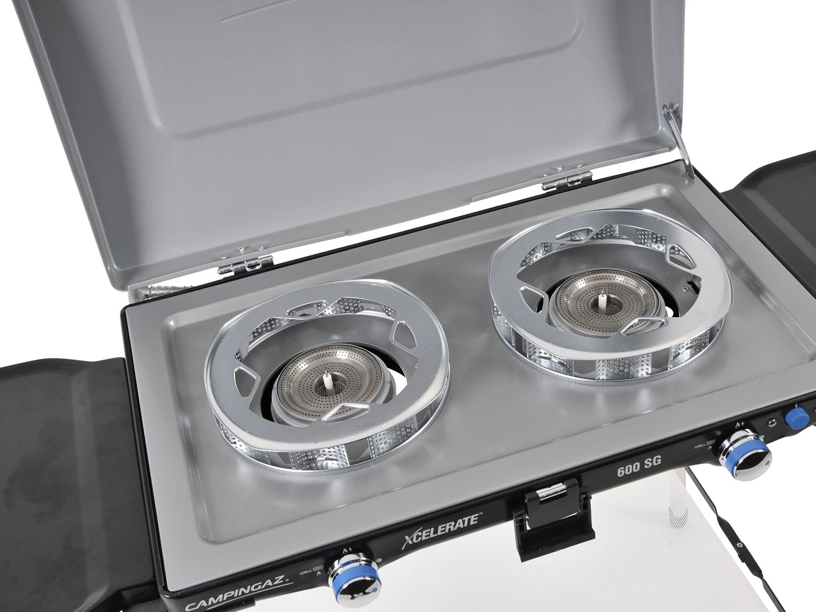Möchten Sie die leckersten Gerichte auf dem Campingplatz zubereiten? Mit diesem zweiflammigen Gaskocher von Gampingaz ist das ein Kinderspiel. Zwei stabile patentierte Topfträger bieten Raum für zwei Pfannen und zusätzlichen Windschutz um die Flamme. Mit den zwei dazu gelieferten emaillierten Grillplatten bieten sich Ihnen multifunktionelle Koch-Optionen. Da die Brenner unabhängig voneinander benutzt werden können, ist es ein Leichtes auf der einen Flamme Wasser für Kartoffeln oder Pasta zu kochen, während auf dem Grill daneben ein Fleisch gebraten wird.