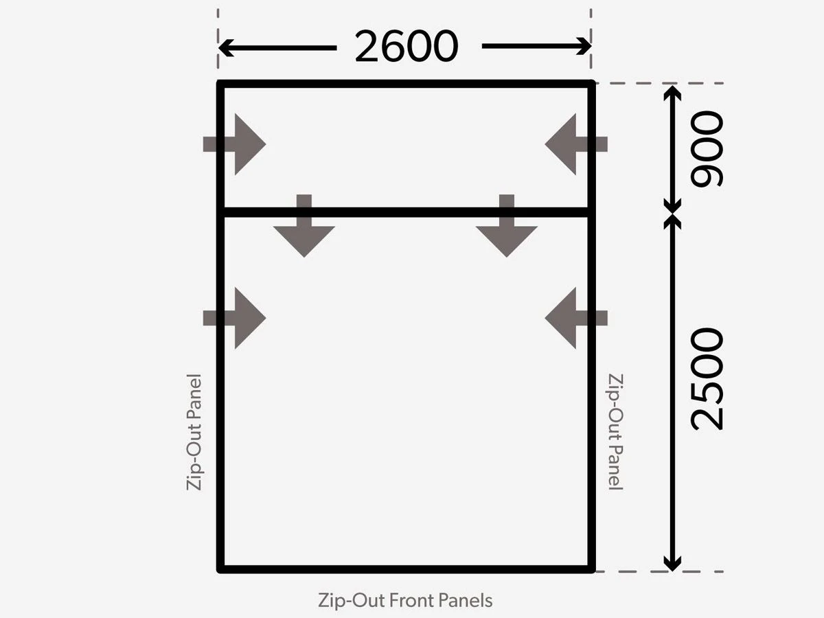 Da der hintere Teil des Vorzeltes keine Luftschläuche enthält, können Sie das Vorzelt auch gut nutzen, wenn Sie eine Schiebetür haben.