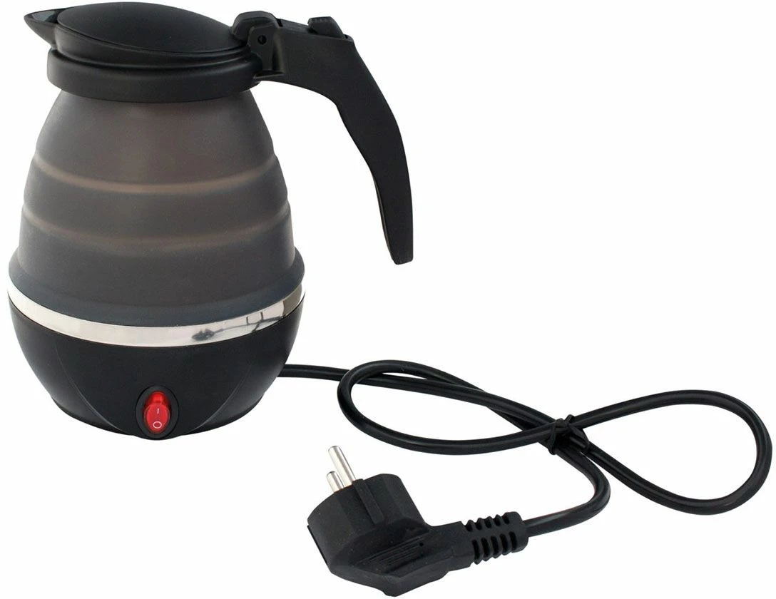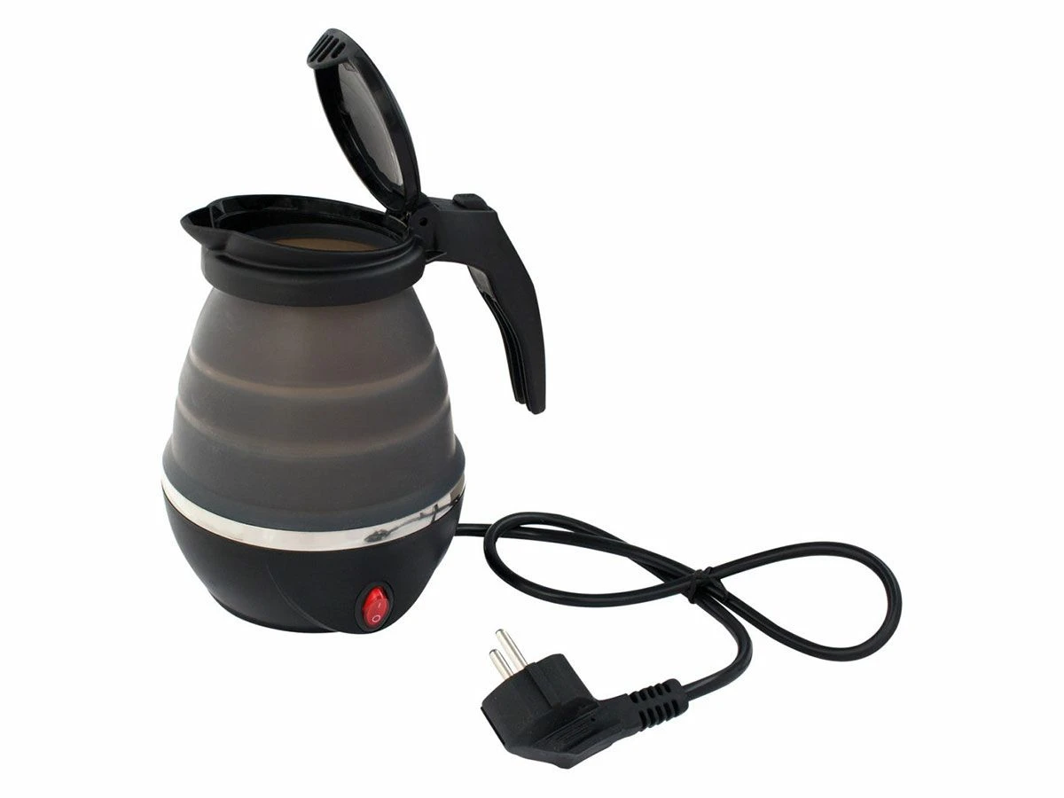 Der Wasserkocher besteht aus Silikon und einem Unterteil aus Polypropylen. Er hat ein Fassungsvermögen von 0,8 Litern und ist mit einem Trockengehschutz und einem Überhitzungsschutz ausgestattet. Der Wasserkocher hat eine Leistung von 1100 Watt und ist somit perfekt für den Einsatz auf dem Campingplatz geeignet.
