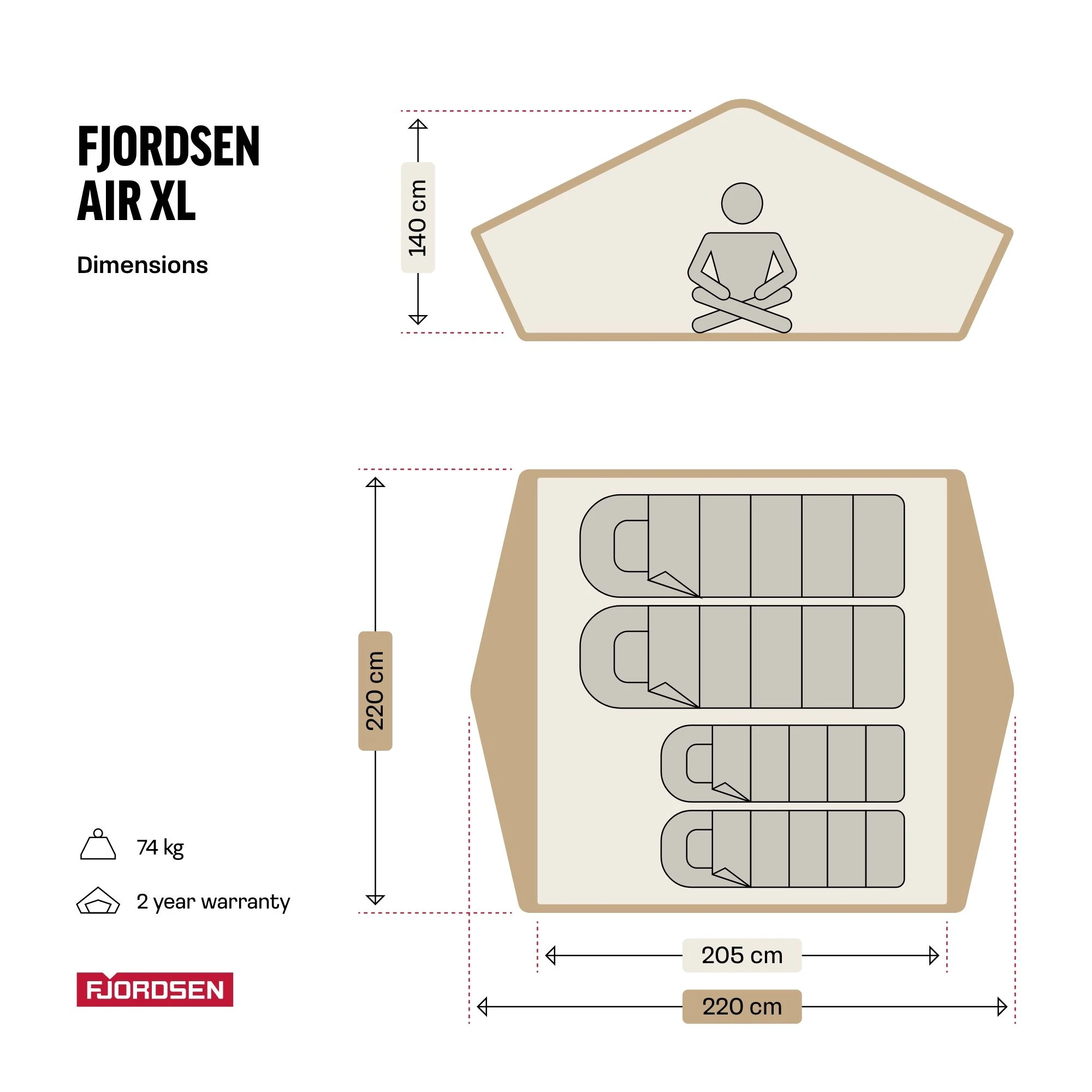 Das Dachzelt Air XL von Fjordsen ist mit seinen großzügigen Maßen von 220 × 220 cm für vier Personen geeignet. So kannst du bequem mit deinen Kindern in einem Zelt schlafen. Überdies wiegt das Dachzelt Air XL nur 74 kg, sodass es auf fast jedes Auto passt.