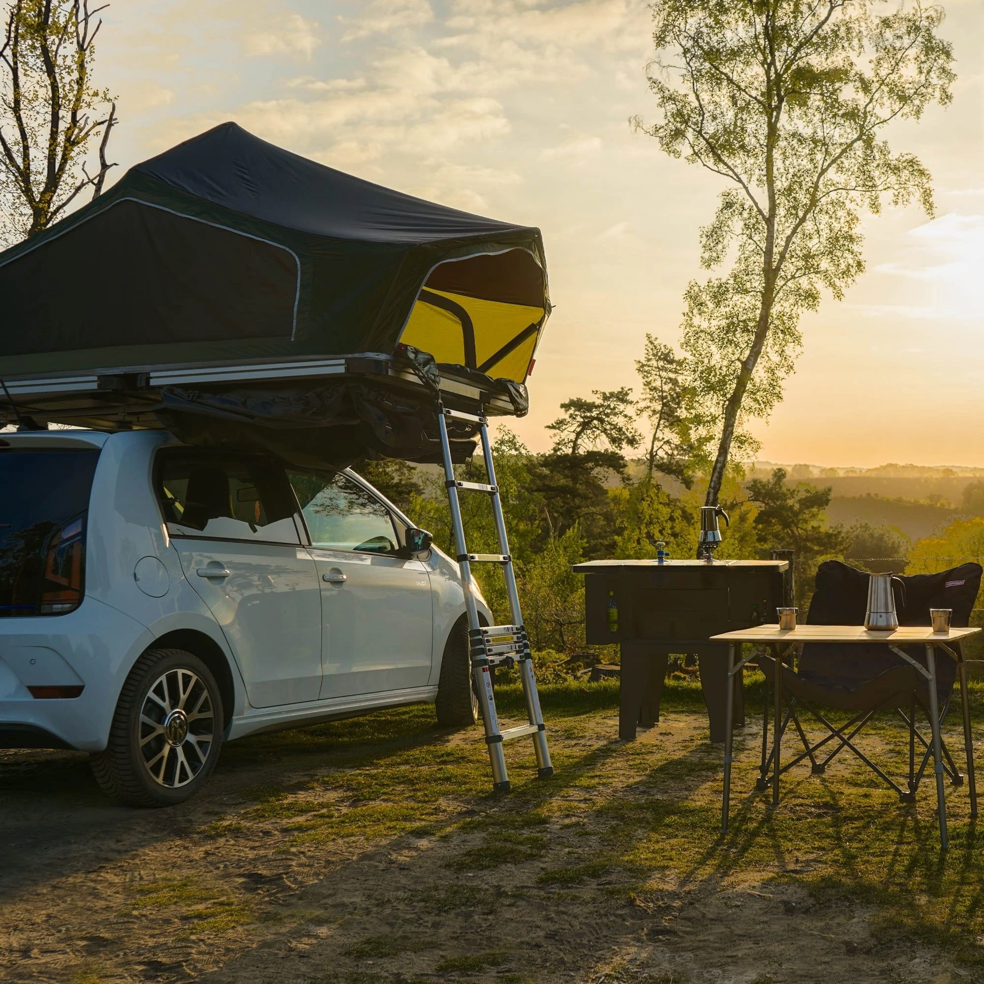 Unsere Dachzelte haben aufgrund ihrer intelligenten Konstruktion und der Verwendung leichter Materialien kaum Gewicht. Daher kann das Dachzelt Light 140 auf fast jedem Auto montiert werden. Auch auf einen Volkswagen up!