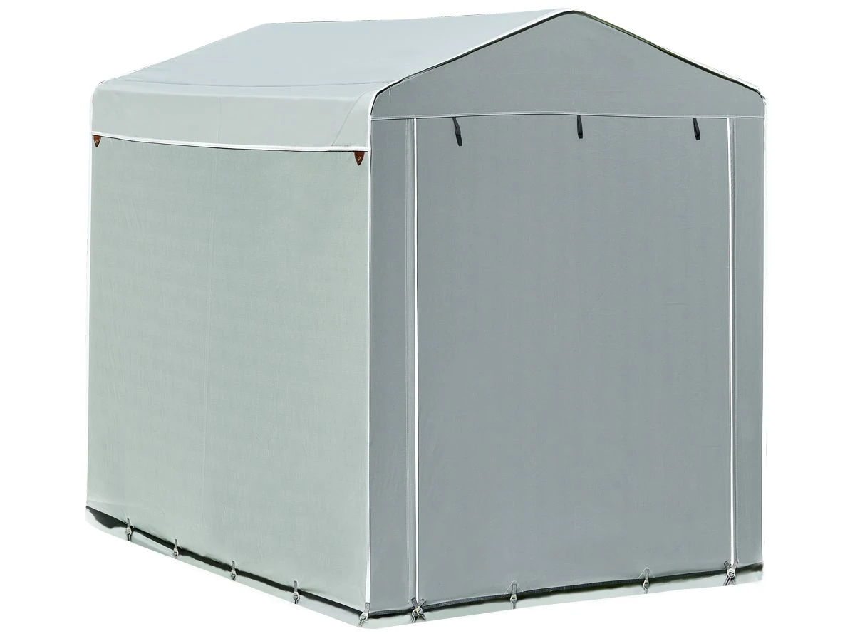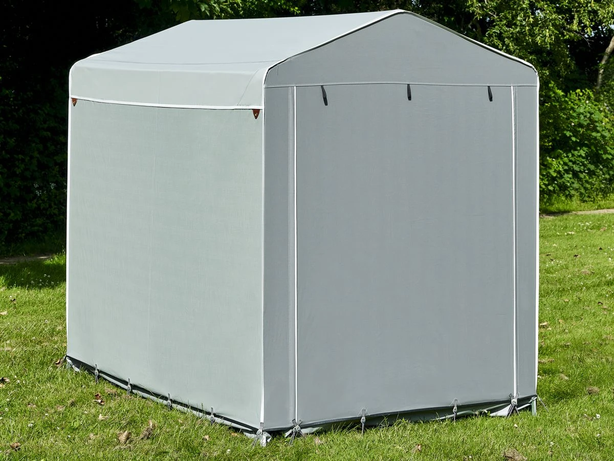 Das robuste PVC-Material ist witterungs- und UV-beständig. Ein weiterer Vorteil von PVC ist, dass es leicht zu reinigen ist. Damit ist das Isabella Space Schuppenzelt das ideale Lagerzelt neben dem Wohnwagen.