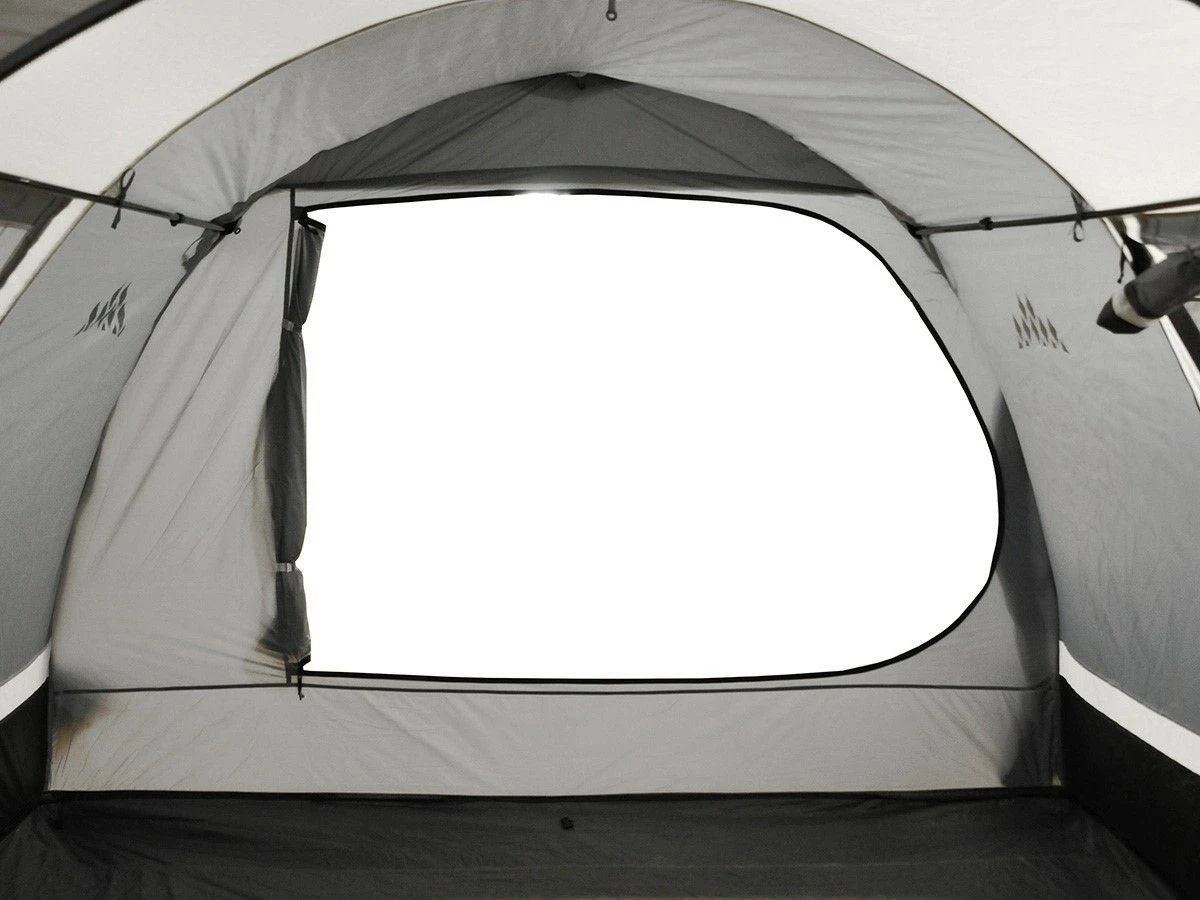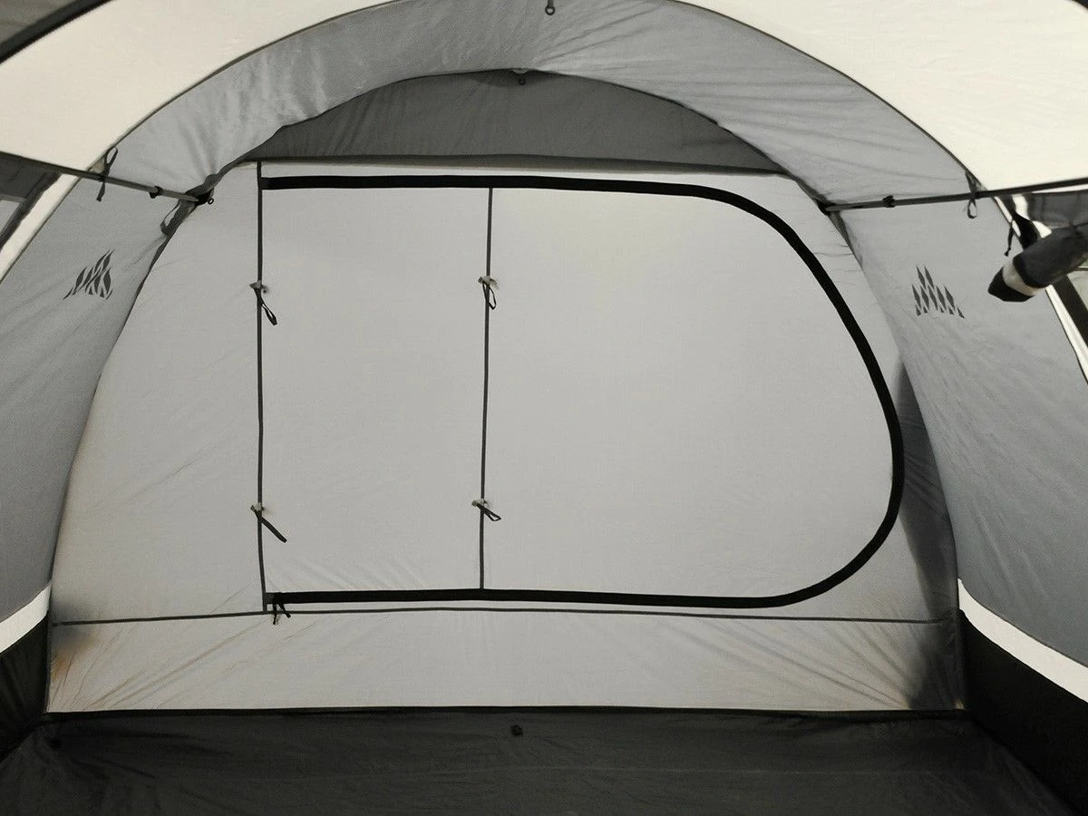 Da die rechte Seitenwand einen Seiteneingang hat, können Sie Ihr Zelt flexible einteilen. Sie können beispielsweise die Vorderseite des Zeltes als Sitzbereich verwenden und einen Durchgang durch den Seiteneingang einrichten.