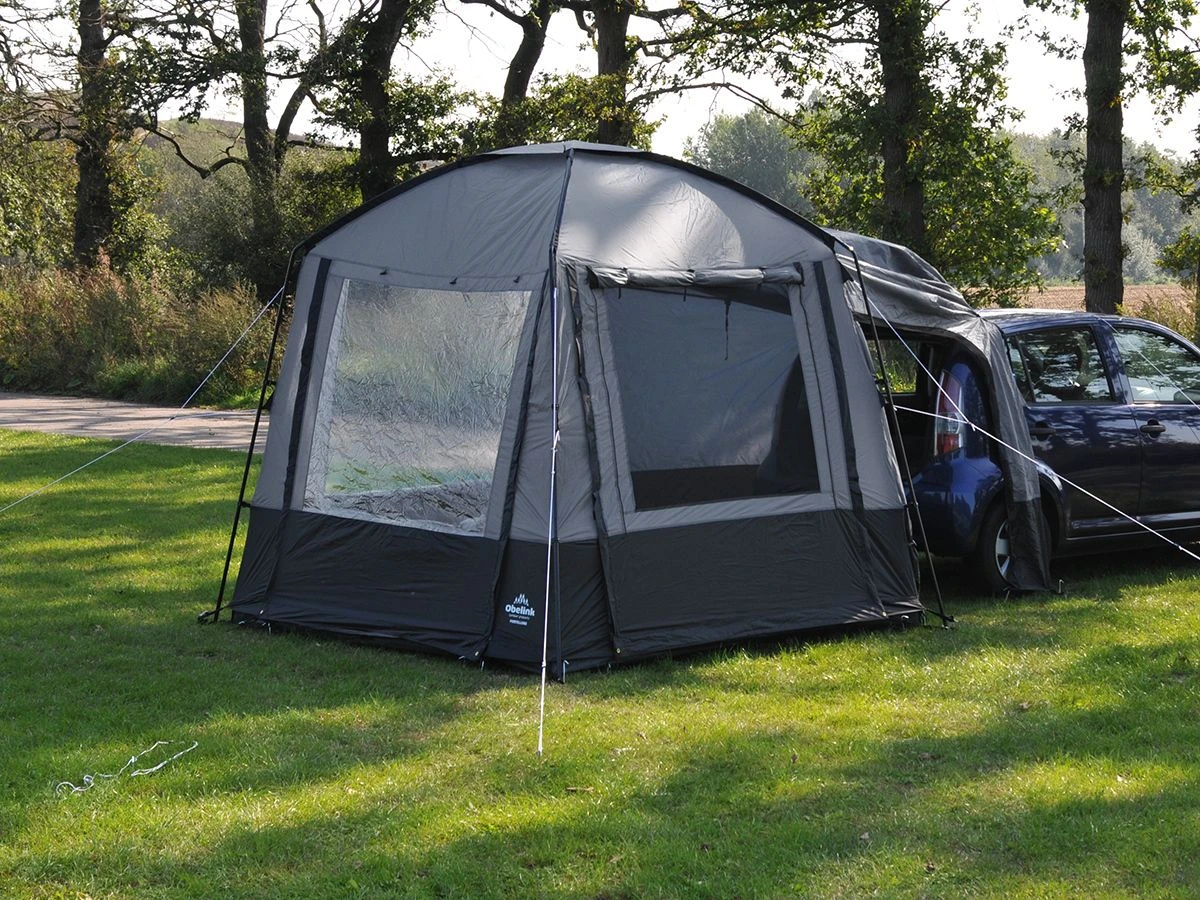 Sie sind viel unterwegs und möchten während Ihres Aufenthalts zusätzlichen Wohnraum? Dann ist der Portellone die ideale Lösung. Die Befestigung des Zeltes ist sehr einfach, öffnen Sie die Heckklappe Ihres Autos oder Busses und spannen Sie die Schleuse mit der elastischen Kordel über die Heckklappe. Sie können die Schleuse dann mit Heringe und Abspannleinen sichern.