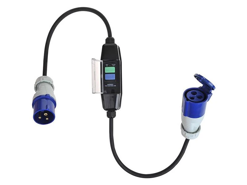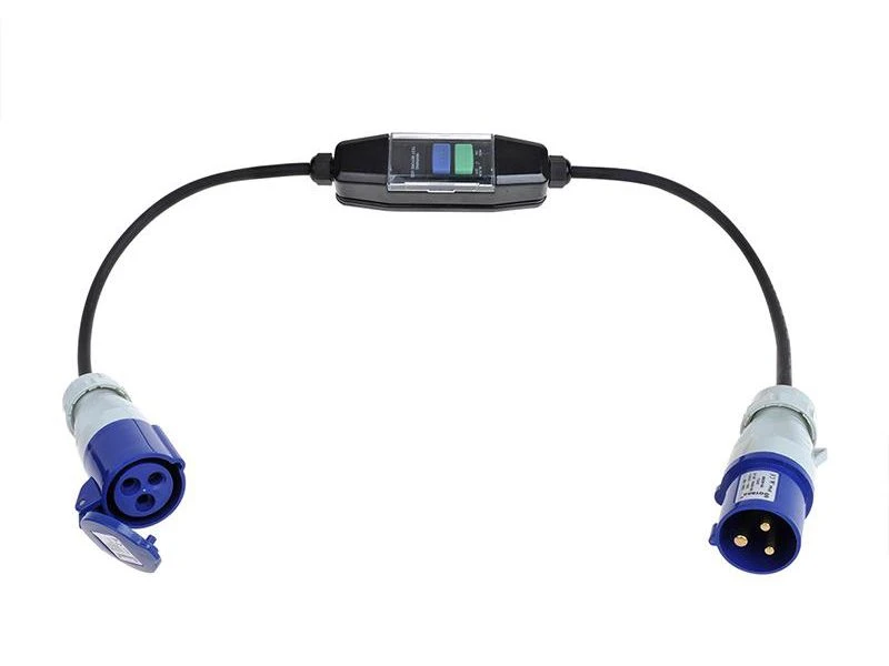 Der CEE Fehlerstromschutzschalter ist mit einem CEE Stecker und CEE Kontrastecker ausgestattet.