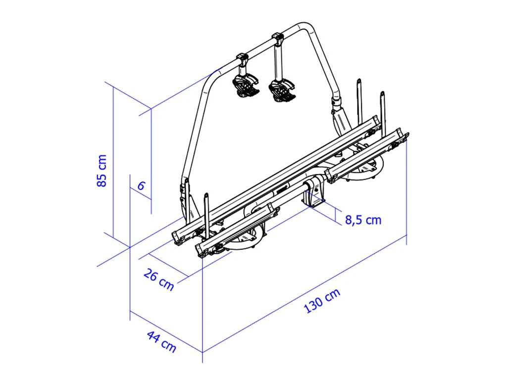 Wahrscheinlich wissen Sie es als erfahrener Camper, dass es sehr anstrengend ist die schweren Fahrräder immer so hoch heben zu müssen, um sie auf den Fahrradträger zu stellen. Dank der abgesenkten Plattform dieses Fahrradträgers müssen Sie nicht mehr so hoch heben und können die Fahrräder leicht abstellen. Die verschiebbaren Radfixierungen ermöglichen es, praktisch jedes Fahrrad zu platzieren, vom Mountainbike bis zum Kinderfahrrad.