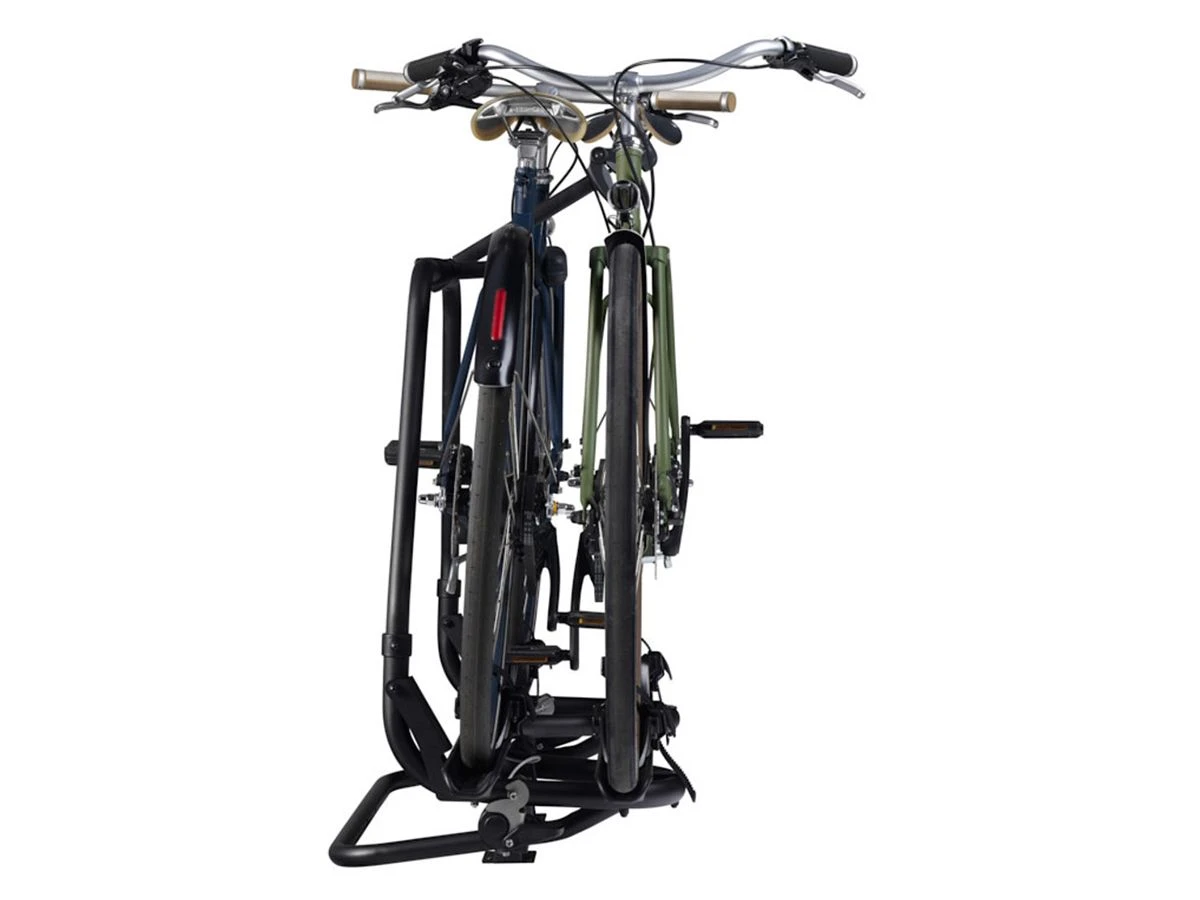 Dieser schwarze elegante Fahrradträger passt auf Standard- und kurze A-Rahmen-Deichseln. Der Fahrradträger hat eine max. Tragfähigkeit von 60 kg und ist ideal für den Transport von zwei (Elektro-)Fahrrädern.