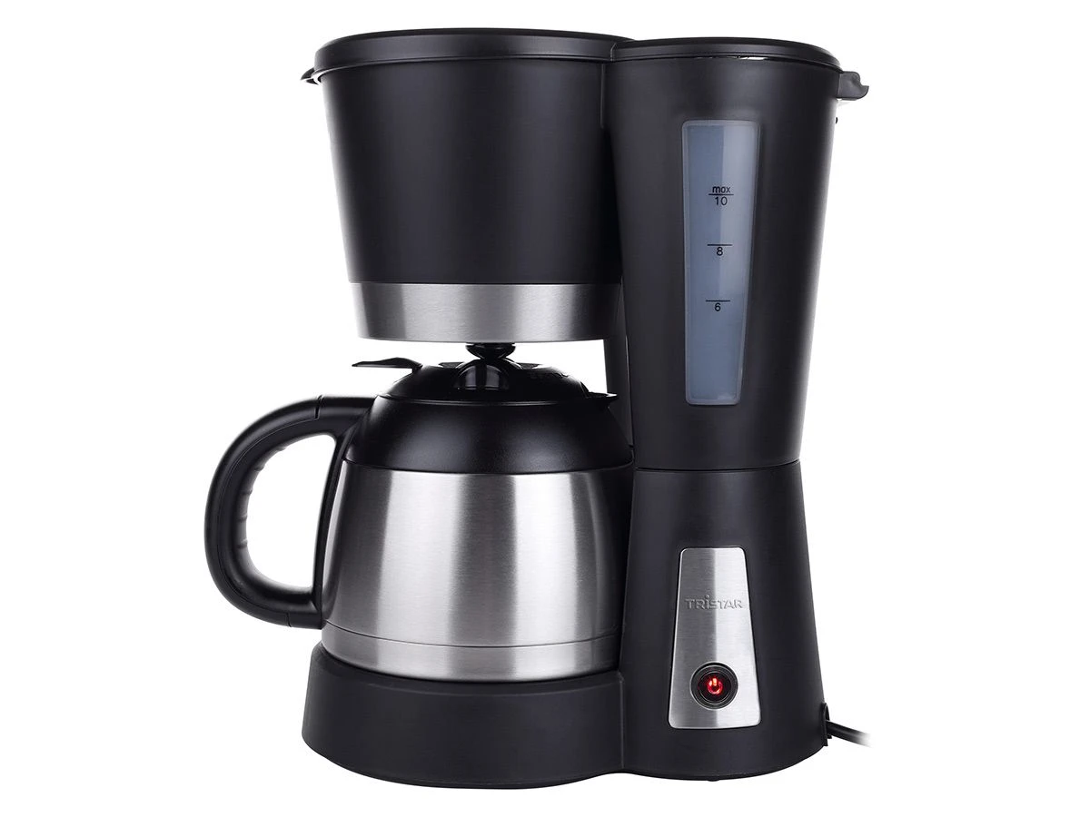 Mit der Tristar CM-1234 können Sie bis zu 1 Liter Kaffee gleichzeitig zubereiten – das entspricht bis zu zehn Tassen. Die Kaffeemaschine ist mit einem Anti-Tropf-System, einer Warmhaltefunktion, einer Abschaltautomatik, einem herausnehmbaren Filter und rutschfesten Füßen ausgestattet.